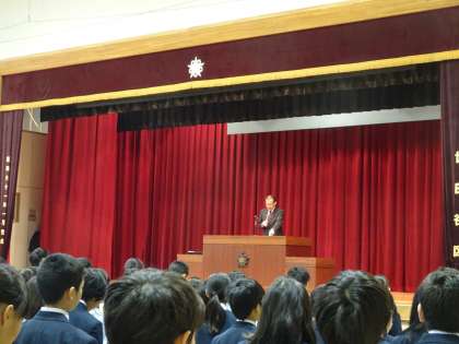 本日、全校朝礼を行いました。校長先生からのお話がありました。