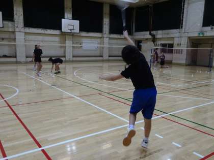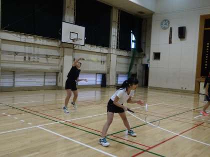 体育館ではバドミントン部が活動しています。ダブルスの練習をしていました。男子部員もがんばっていますね。(遠藤)