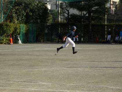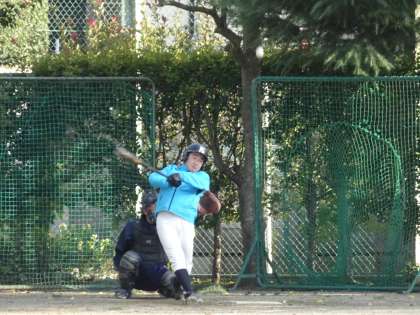 シートバッティングをしていました。カウントやランナーの位置を考えてバッティングをしましょう。(遠藤)