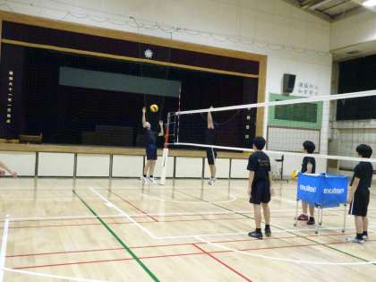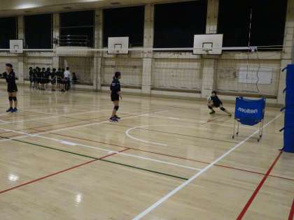男子はスパイク練習をしていました。女子はサーブレシーブの練習です。(遠藤)