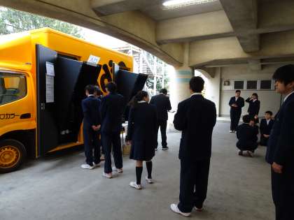 3年生が受験写真の撮影をしています。願書に貼って提出することになる写真です。服装や髪形をきちんと整えて、好印象をもたれるようにしましょう。(遠藤)