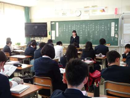 古典スピーチの発表をしていました。古典を学ぶ意義や故事成語についてスピーチしていました。(遠藤)