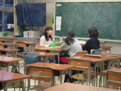 2学期の反省や学校生活の様子、家庭での様子など保護者と情報交換をしています。(遠藤)