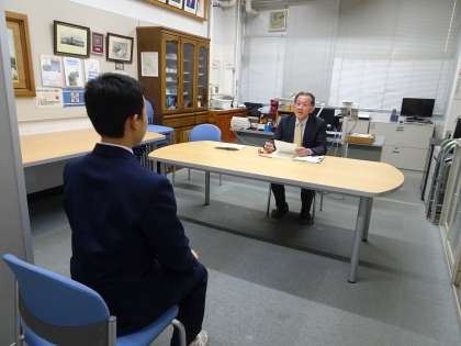 放課後、3年生は校長先生の面接練習をしています。