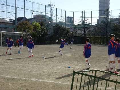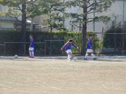 シュート練習をしていました。ゴールキーパーの捕りにくいコースを狙ってシュートを打ちましょう。(遠藤)