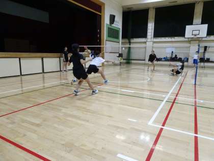 今週末にも試合があるので、ダブルスの試合形式の練習をしていました。(遠藤)