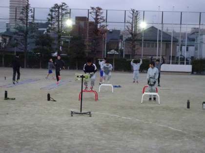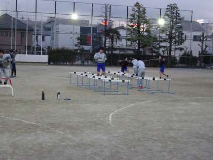 ウエイトトレーニングやハードルやラダーを使い下半身のトレーニングをしていました。(遠藤)