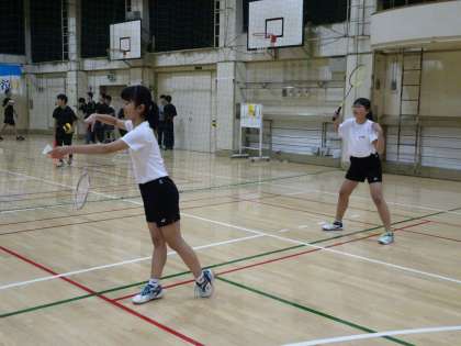 明後日の試合に向けてダブルスの練習です。(遠藤)