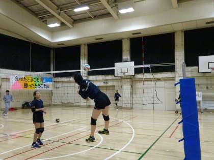 男女ともスパイクの練習をしていました。セッターとのコンビをうまく合わせましょう。(遠藤)
