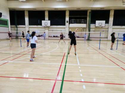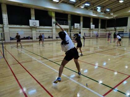 明日のダブルスの試合に向けての最終調整です。明日はがんばってください。(遠藤)