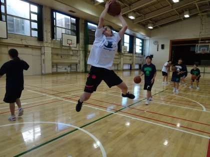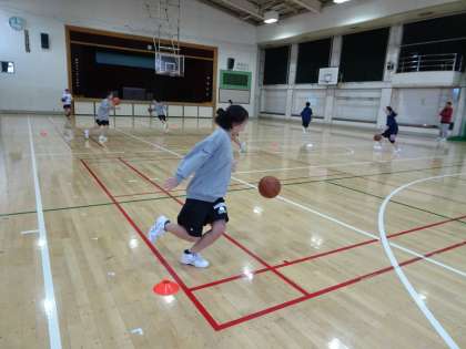バックチェンジやロールを使ったドリブル練習やリバウンドの練習をしていました。(遠藤)