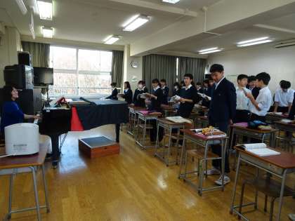 卒業式に向けて「旅立ちの日に」の練習をしていました。(遠藤)