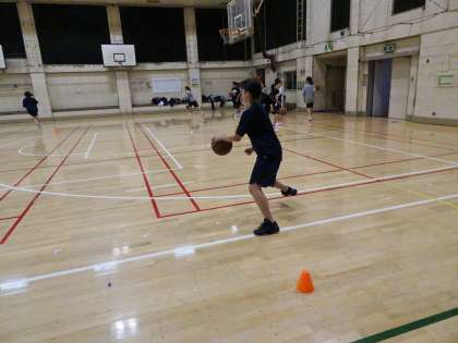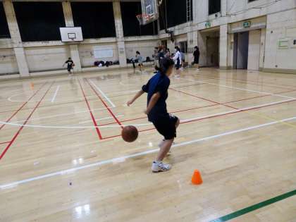 ドリブルの練習をしていました。バックチェンジやロール、レッグスルーなどを使いこなせるようになりましょう。(遠藤)