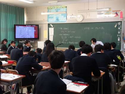 電池のしくみと電気分解について学習していました。電子の移動によりそれぞれの電極でどんな変化が起こるのか、きちんと覚えましょう。(遠藤)