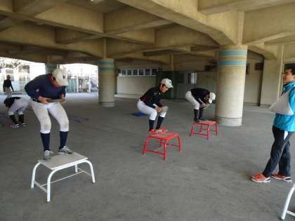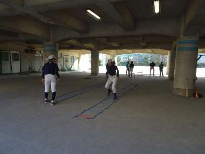 ラダーやダンベルを用いてトレーニングをしています。体全体をバランスよく鍛えていきましょう。(遠藤)