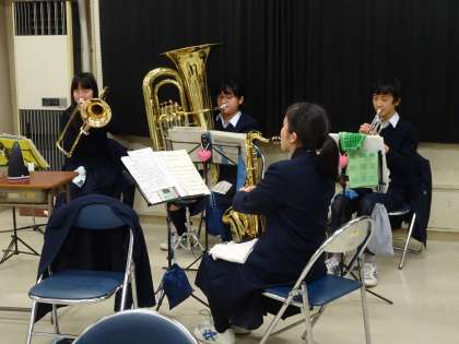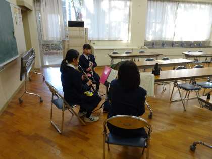 明日の吹奏楽部内アンサンブル発表会に向けて、各パートとも集中して練習しています。(遠藤)
