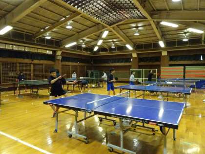 ドラブロの練習をしています。フットワークを使ってすばやく移動しましょう。(遠藤)