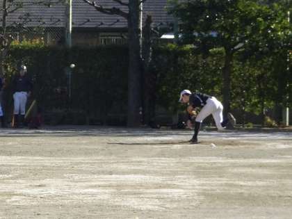シートバッティングをしていました。アウトカウントなどの状況に合わせてバッティングやフィールディングをしましょう。(遠藤)