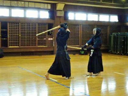 上段に構えるときは、視界を広くとれるようにきちんと肘を張りましょう。(遠藤)