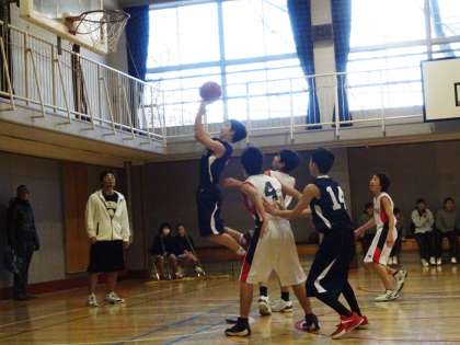 男子バスケットボール部は弦巻中と練習試合を行っています。