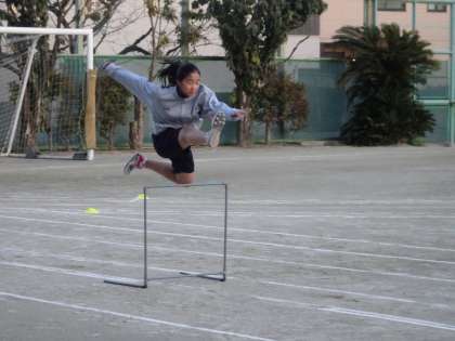 ハードルや走り幅跳び、走り高跳びの練習をしていました。(遠藤)