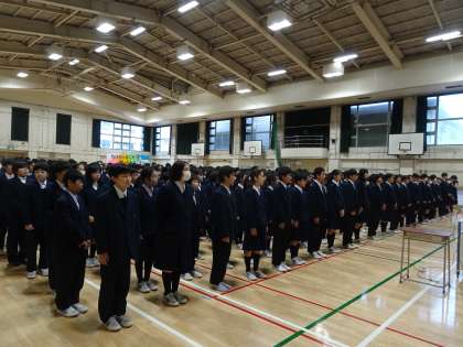 第3学期の始業式です。今日から3学期が始まります。3学期は準備の学期です。1年間の成果を確認して、次のステップにつなげる学期にしていきましょう。(遠藤)