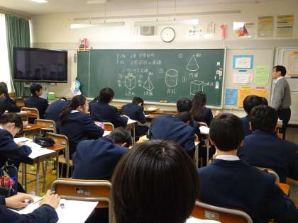 空間図形について学習していました。それぞれの立体の特徴をきちんとおさえておきましょう。(遠藤)