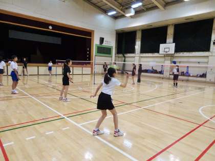 体育館ではバドミントン部が活動しています。