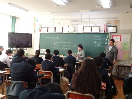ALTの先生の授業です。学校行事や部活動を英語で紹介する文を考えていました。(遠藤)