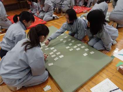 生徒たちは初めての百人一首大会を楽しんでいました。百人一首大会を見学しに来ていただいた多くの保護者のみなさま、ありがとうございました。(遠藤)