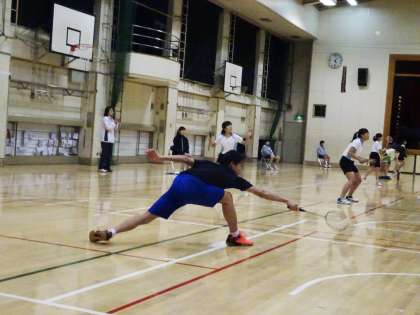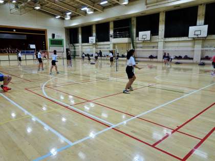 15時から体育館ではバドミントン部が芦花中と練習試合を行っています。
