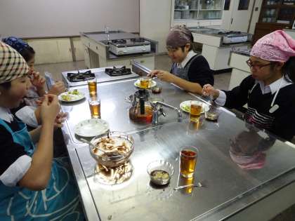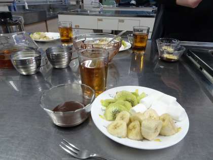 甘い匂いに誘われて調理室に行ってみると、家庭科部がチョコレートフォンデュを作っていました。とても美味しそうです。(遠藤)