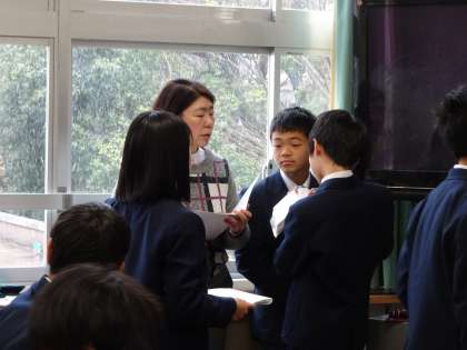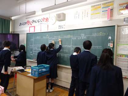 「徴兵令」「地租改正」「学制」について、江戸から明治にかけてどう変わっていき、どんな影響や問題点があったか調べ、黒板に書いていました。(遠藤)