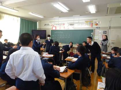 2年生の家庭科の授業です。調理実習で作る蒸しパンの中に入れる野菜を何にするか決めています。(遠藤)