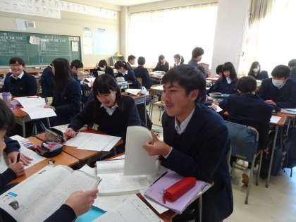 走れメロスの話の中で疑問に思ったことをグループディスカッションしています。(遠藤)