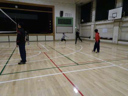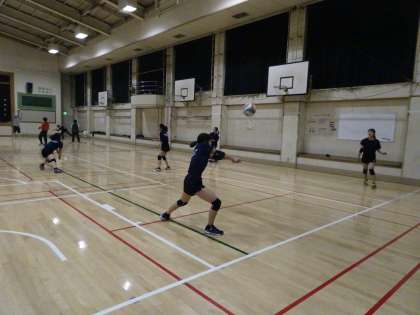 体育館ではバレーボール部が活動しています。レシーブ練習をしていました。(遠藤)