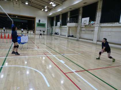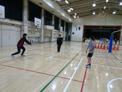 バレーボール部が体育館で活動しています。男女ともレシーブ練習をしていました。(遠藤)