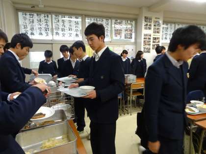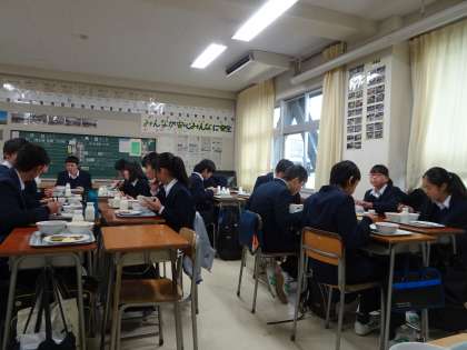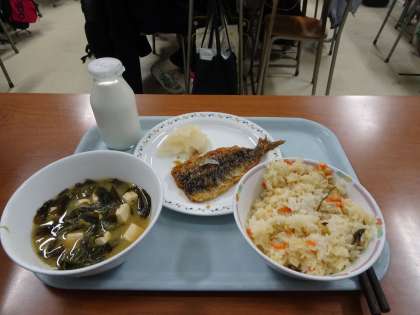 楽しい給食の時間です。今日は大豆がたくさん入った節分ごはん、いわしのかば焼きです。病気をせず元気に過ごせるようにしっかり食べましょう。(遠藤)