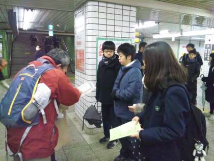 生徒たちが集まってきました。駒沢大学駅でチェックを受けて出発。いざ鎌倉へ。(遠藤)