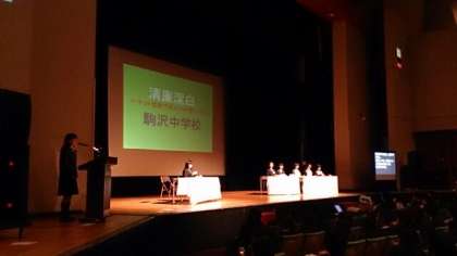 各ブロックから工夫を凝らして分かりやすく1年生に、テーマ「これからの社会を生きる私たち」について考えたことを伝えました。素晴らしい発表でした。1年生はそのメッセージを受けとめて明日からの学校生活を充実させましょう。生徒会サミット代表の2年生の皆さん、お疲れさまでした。この経験を自分の自信にして、各校の生徒会活動を発展させましょう。(桝田)