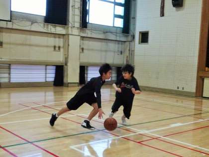 1対1をやっていました。ドライブをしかけるときは、低く強いドリブルを意識しましょう。(遠藤)