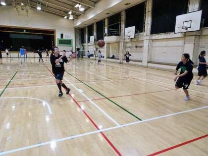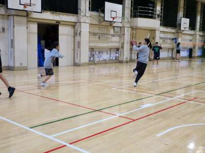スクエアパスをやっていました。走るコース、ターゲットハンド、キャッチボイス、リードパス等、きちんと意識をして練習しましょう。(遠藤)