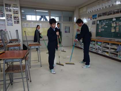 放課後の教室掃除の様子です。自分たちが使っている教室を毎日きれいに掃除して、学習環境をきちんと整えましょう。(遠藤)
