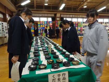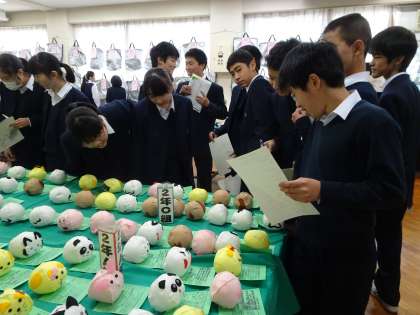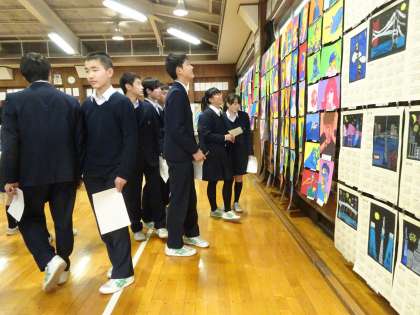 展示されている自分たちの作品を見たり、他学年の作品を見たりして「これ上手い」とか「自分たちも作ってみたい」と話していました。(遠藤)
