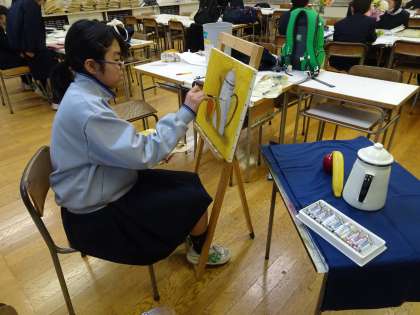 美術部が油絵を描いていました。イーゼルの使い方もマスターし、絵も完成に近づいていますね。(遠藤)