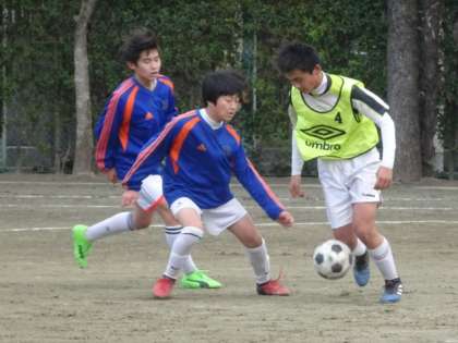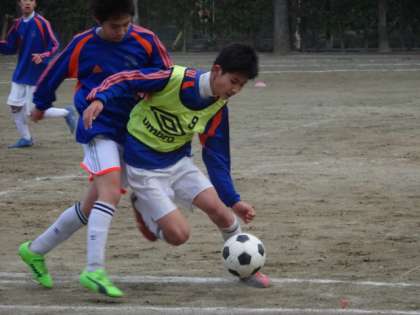 ゴールまでの距離を狭くして、常にゴール前でのプレーになるように練習していました。(遠藤)