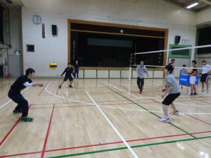 男子は3メン、女子はサーブカットの練習です。(遠藤)