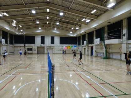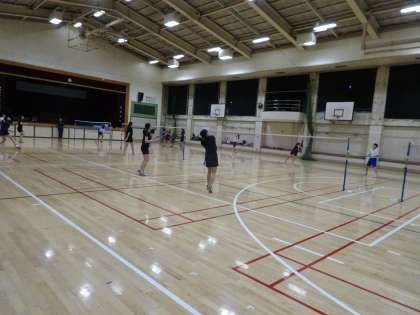バドミントン部が体育館で活動しています。