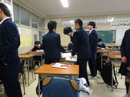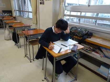 ノートを見ながら確認したり、テストに出そうなところをお互いに予想したりしていました。(遠藤)