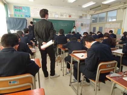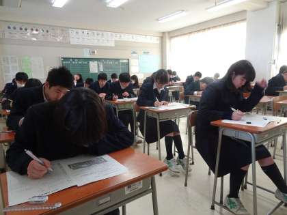 学年末考査3日目。今日が最終日です。数学、保健体育、技術家庭の試験が行われます。数学は少人数授業を行っているので、試験の巡回も授業をしている先生みんなで回っています。各学年のまとめです。学習した力を出し切りましょう。(遠藤)
